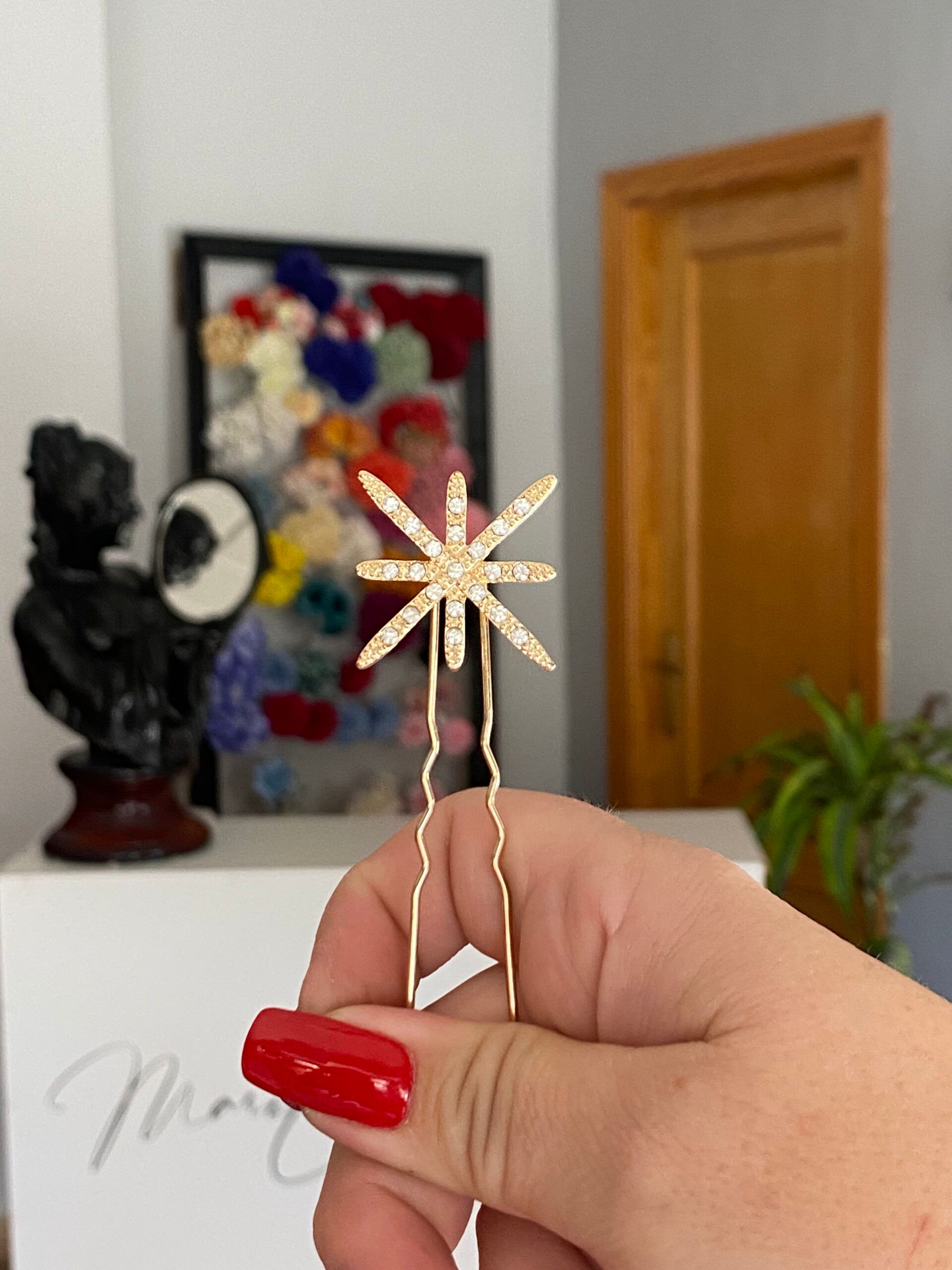 La Horquilla Flamenca Estrella Dorada se destaca por su elegancia unisex, perfecta para cualquier género y edad. Su diseño versátil asegura un ajuste perfecto en cualquier peinado, aportando un toque de sofisticación. El detalle dorado añade un elemento distintivo que celebra la rica tradición flamenca manteniendo un estilo contemporáneo.