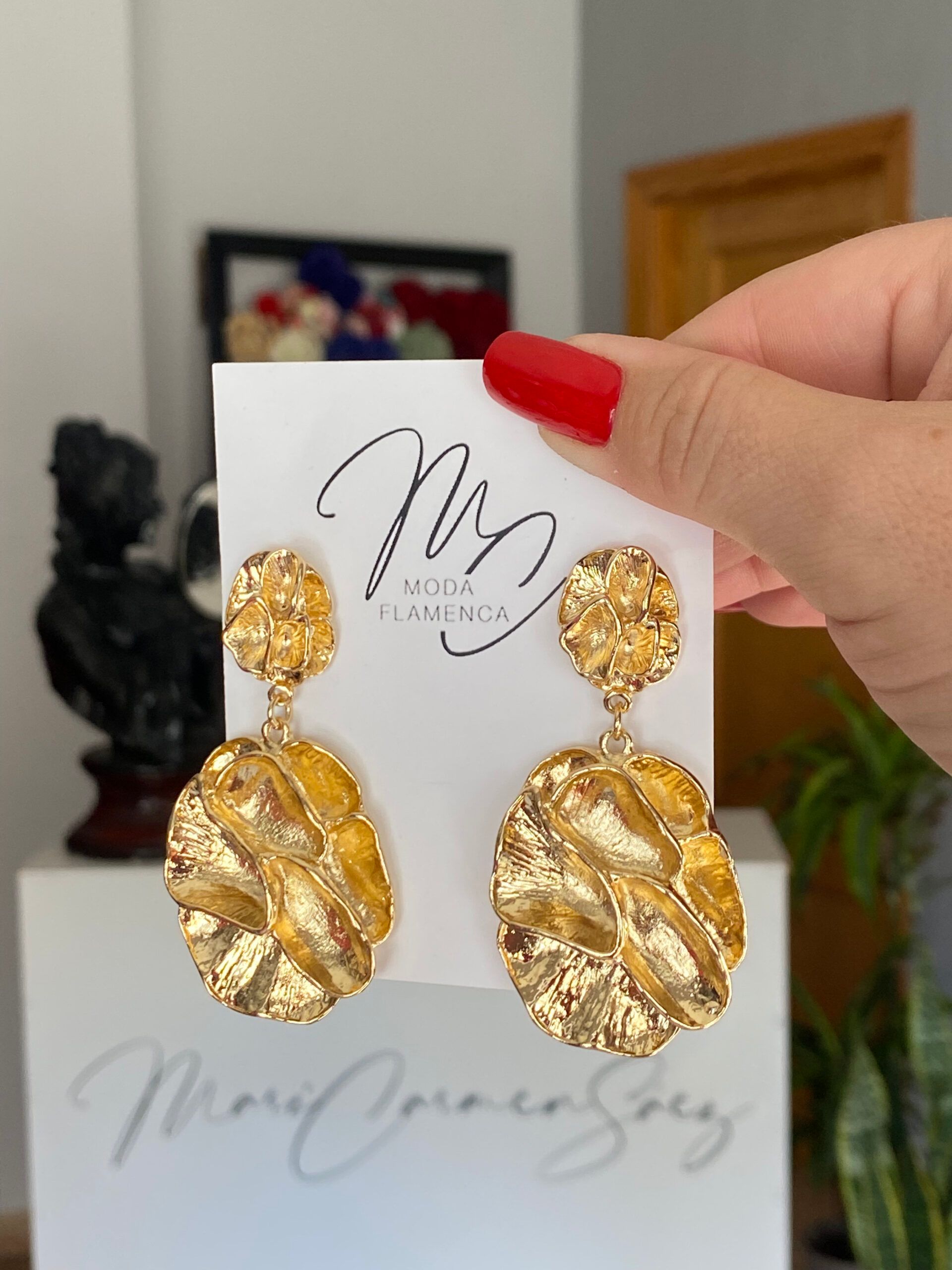 Pendientes de flamenca dorados de relieve irregular.